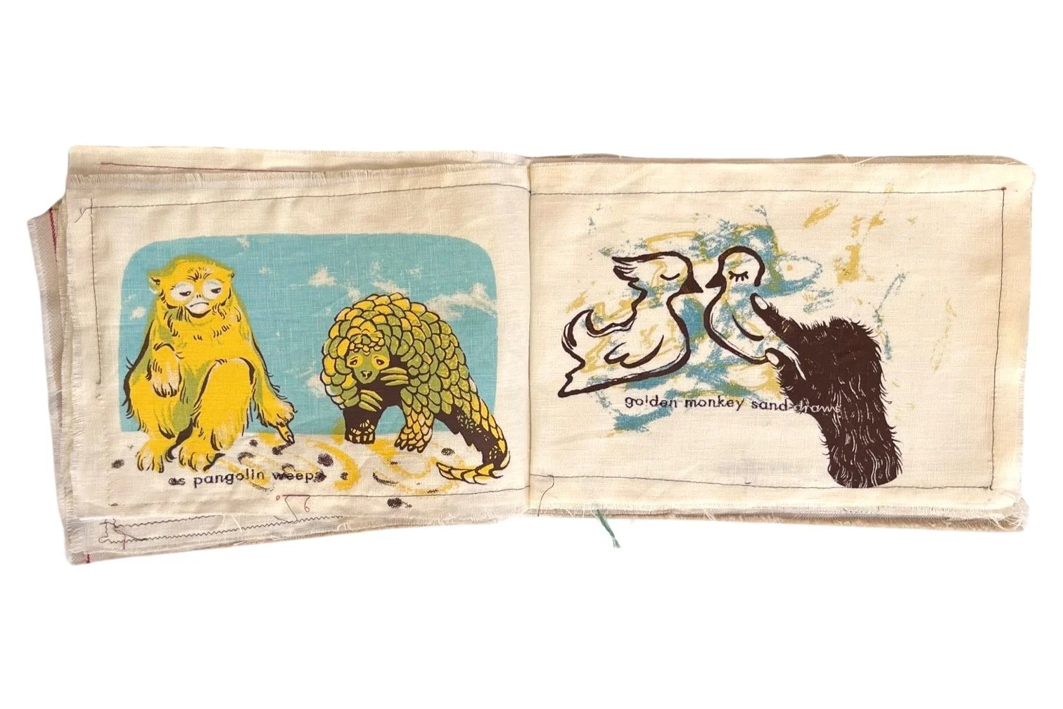 “The Mandarin Duck” is a 14 page, tricolor silkscreen book printed on linen. The texts are digitally embroidered.